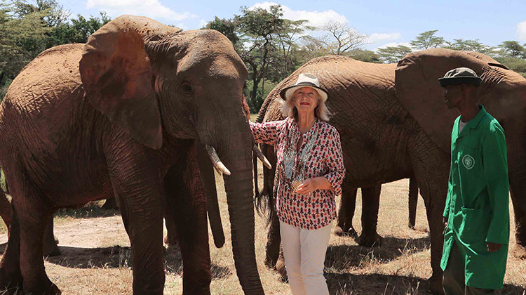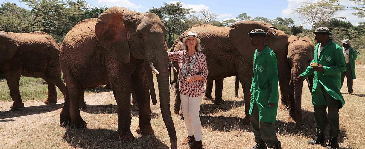 Sylvie visiting charity partner Sheldrick Wildlife Trust in Kenya