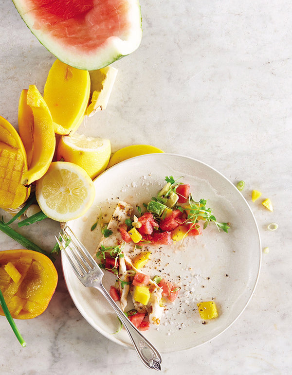 TIP: Any kind of seasonal fruit works in the salsa—you can use pineapple, peaches, plums, or nectarines in place of the mango or melon if you like.