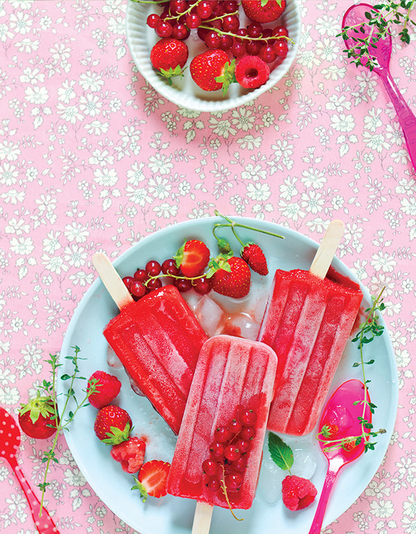 Flip through French food stylist Beatrice Peltre’s My French Family Table and prepare to be endlessly inspired. The meals, treats and salads are all crafted with a healthy joie de vivre that stuns the eyes and delights the palate—especially these gorgeous ice pops. When berries abound in summer, there’s nothing fresher than an icy treat that’s bursting with the season’s juicy flavors. On a super-hot day, pulling one of these pretties from the freezer beats store-bought popsicles hands down.