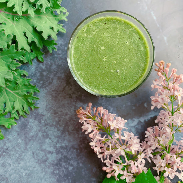 Large handful leafy greens (try kale, spinach, or dandelion greens)