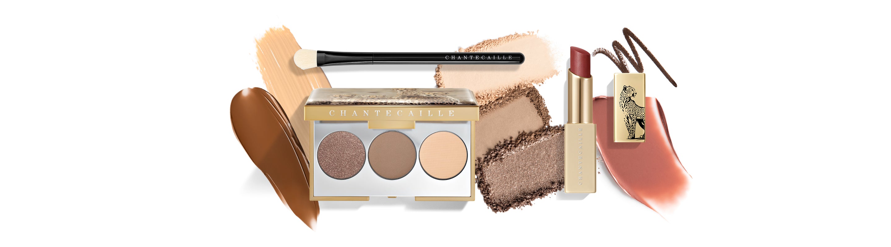 Rich, layered neutrals create an elegant, easy look accented with rich metallic flourishes. The look of the season features Fall’s limited-edition Cheetah Eye Trio and Lip Veil, along with perennial favorites Future Skin, Cheek Shades and Faux Cils Longest Lash Mascara.