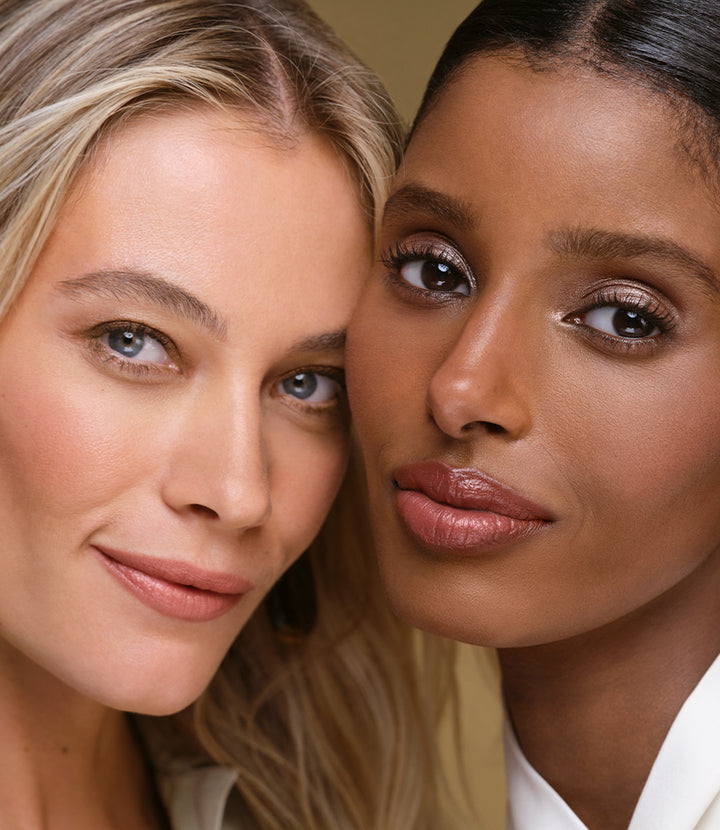 1. Future Skin in Camomile (on Barbara, left) and Just Skin in Mahogany (on Senait, right) offer skin-perfecting coverage with a fresh, natural finish. Apply to the center of the face with the fingertips or Foundation and Mask Brush and blend outward for a natural look.