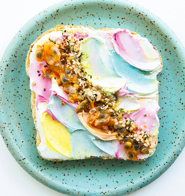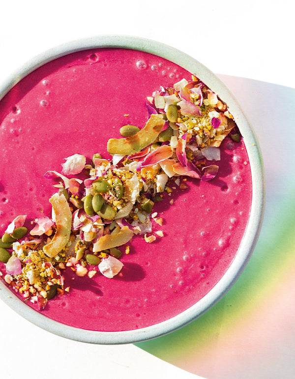 We swear a little color therapy helps the dog days before Spring fly by (see: our Hummingbird Collection). So we fell hard for Adeline Waugh’s new cookbook, Vibrant & Pure: Healthful Recipes for Bright, Nourishing Meals. The photographer-stylist began overhauling her eating habits a few years ago when she connected her regular acne breakouts to her processed food-heavy diet. She cut out refined sugars, dairy, and gluten and upped her intake of nutrient-dense whole foods, which cleared up her skin and mental fog. Waugh launched @vibrantandpure to document her health journey on Instagram, where her prismatic styling blew up. We asked her for thoughts on healthy versus obsessive eating, how to Instagram your plate and must-try vibrant ingredients (rosewater is one of her faves!) to have on hand—and also asked her to share her most sense-quenching recipes.