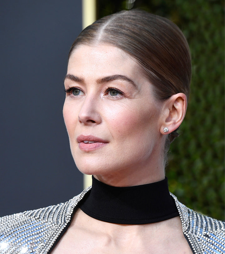 3. Le Chrome Luxe Eye Duo in Kenya was the key to Rosamund’s eye look. The shimmery rose shade Lamu was applied to the crease of the eyes, and the darker shimmery, warm color of the duo, Amboseli, was used to define the outer corners to elongate her eye shape.