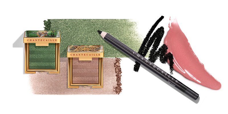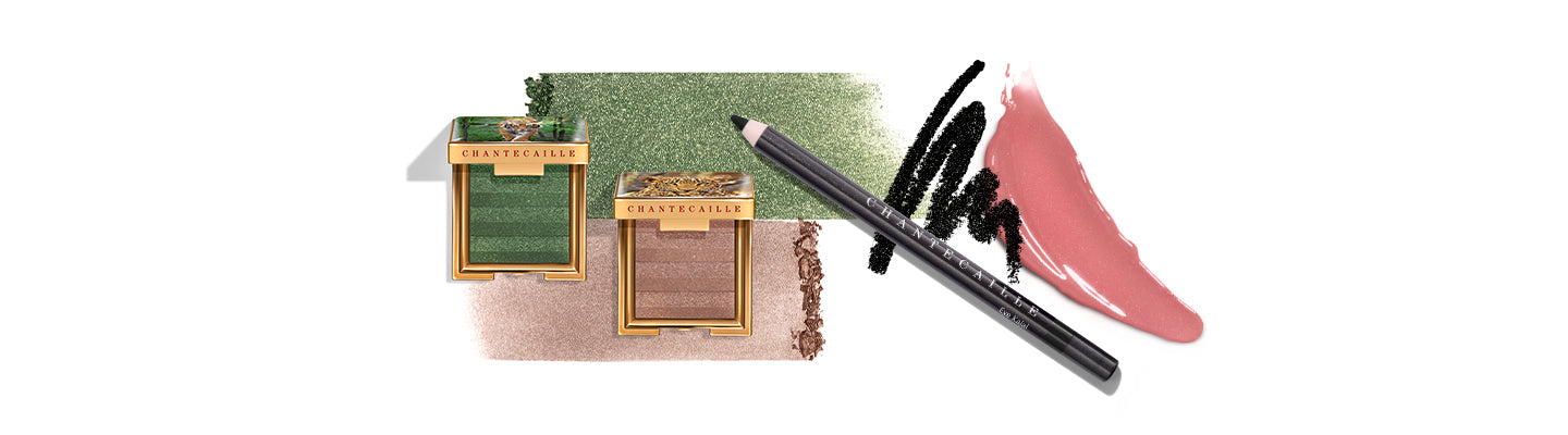 A new take on the classic kohl-rimmed eye gets a hint of texture from layered shadows in rich emerald and bronze. Flawless skin and a sophisticated neutral lip keep all the focus on the eyes.