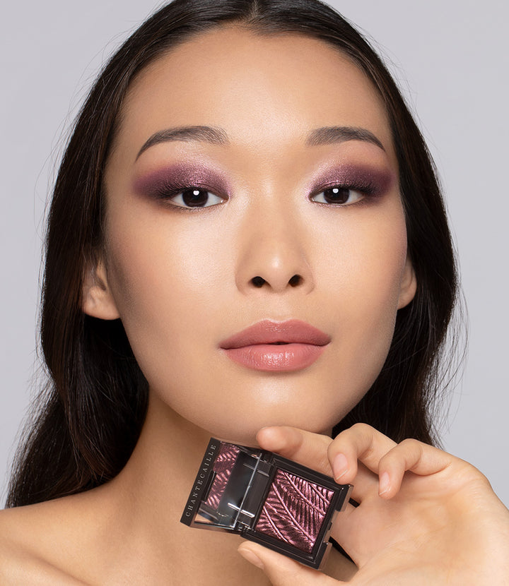 Create a holiday look that’s all about the eyes with an elegantly shimmering, smoky look and a chic matte lip that won’t steal the show (or rub off on your mask).