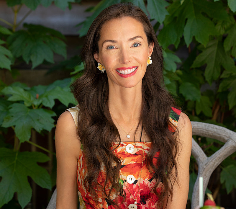 "Summer is my birthday season and while I love the sun, my dry skin needs extra pampering to keep ahead of skin troubles. Every morning, I use Pure Rosewater when I wake up and a mixture of Bio Lifting Serum+ and Nano Gold Energizing Face Cream before using USP and a bit of Real Bronze in Sirena on my cheeks. I love our Hummingbird Lip Chic and am trying every shade. At night after serious exfoliating with Bamboo and Hibiscus Exfoliating Cream, I apply a super layer of Gold Recovery Mask— it has the most wonderful effect on my sensitive skin and really restores my skin and signs of sun damage overnight. I also use our Nano Gold Energizing Eye Cream to keep my eyes from showing signs of too much sun."