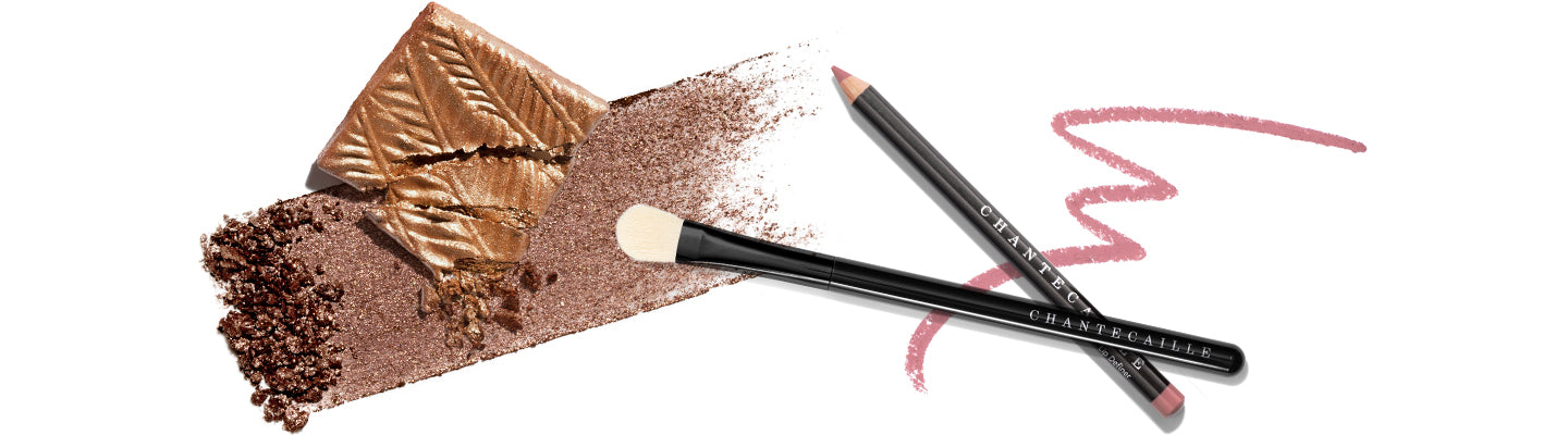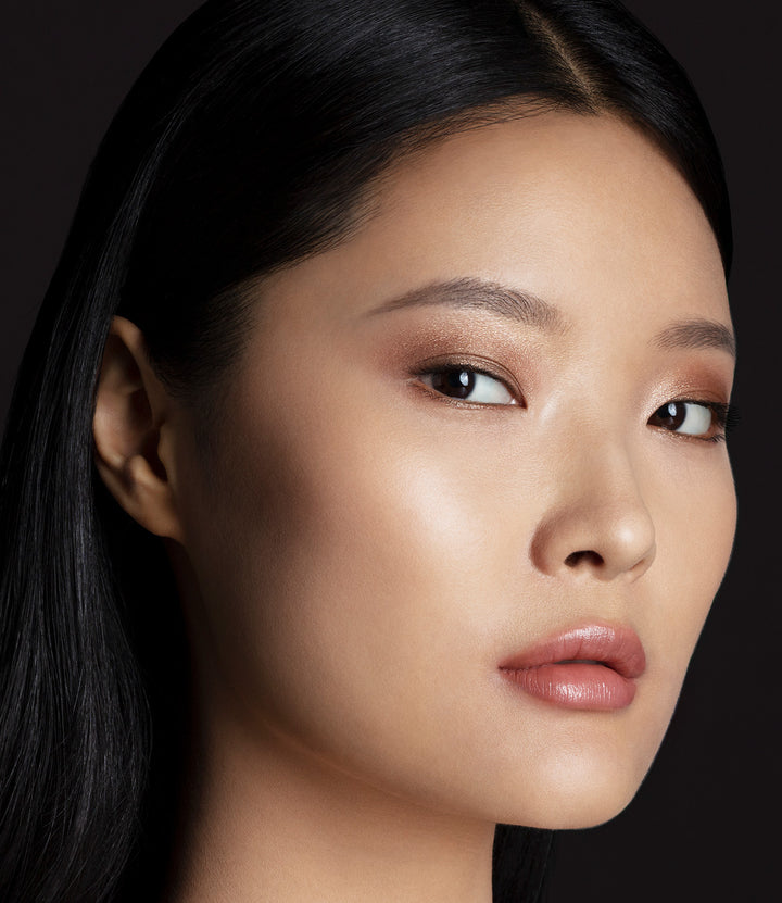 1. To create a radiant sweep of color on the eyelid, apply Luminescent Eye Shade in Lion, a golden copper, across the entire lid. Blend Luminescent Eye Shade in Giraffe into the crease for definition with the Shade and Sweep Brush.