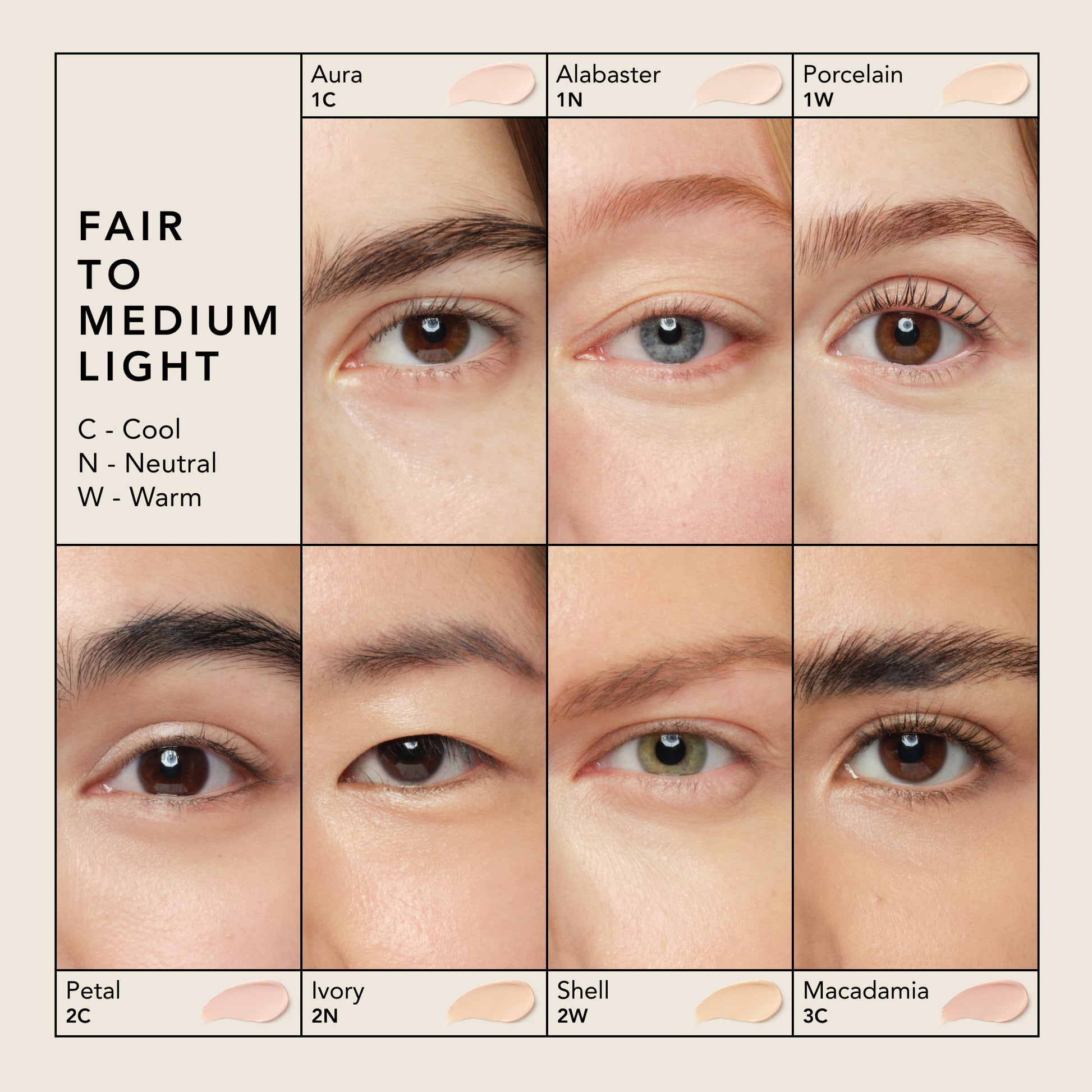 Apply to the under-eye area and wherever additional coverage is desired; gently blend with the Blend and Conceal Brush or fingertips.