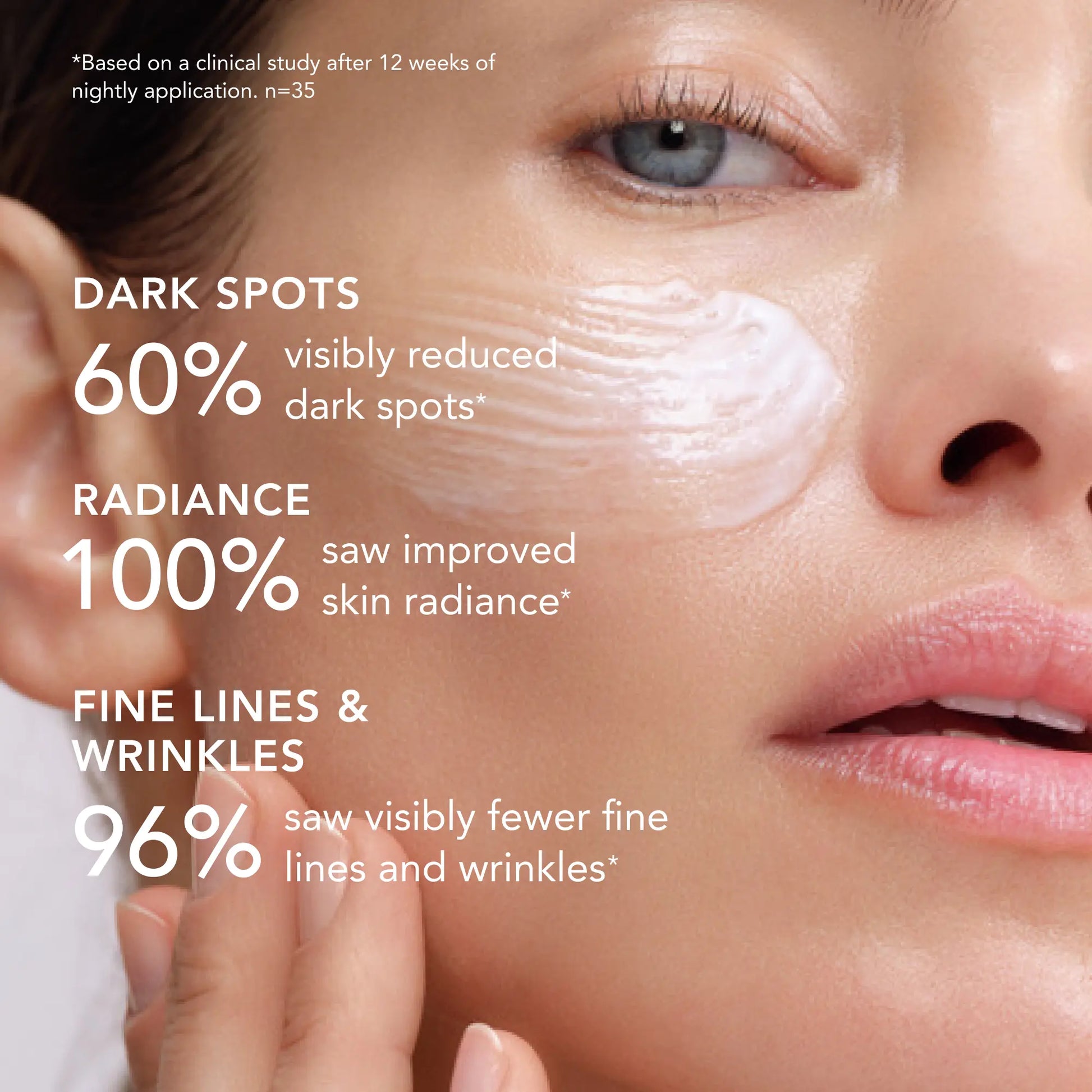 A powerful night mask, clinically proven to reduce the appearance of dark spots by 60%* and revitalize skin radiance overnight**, when it naturally re-sets.